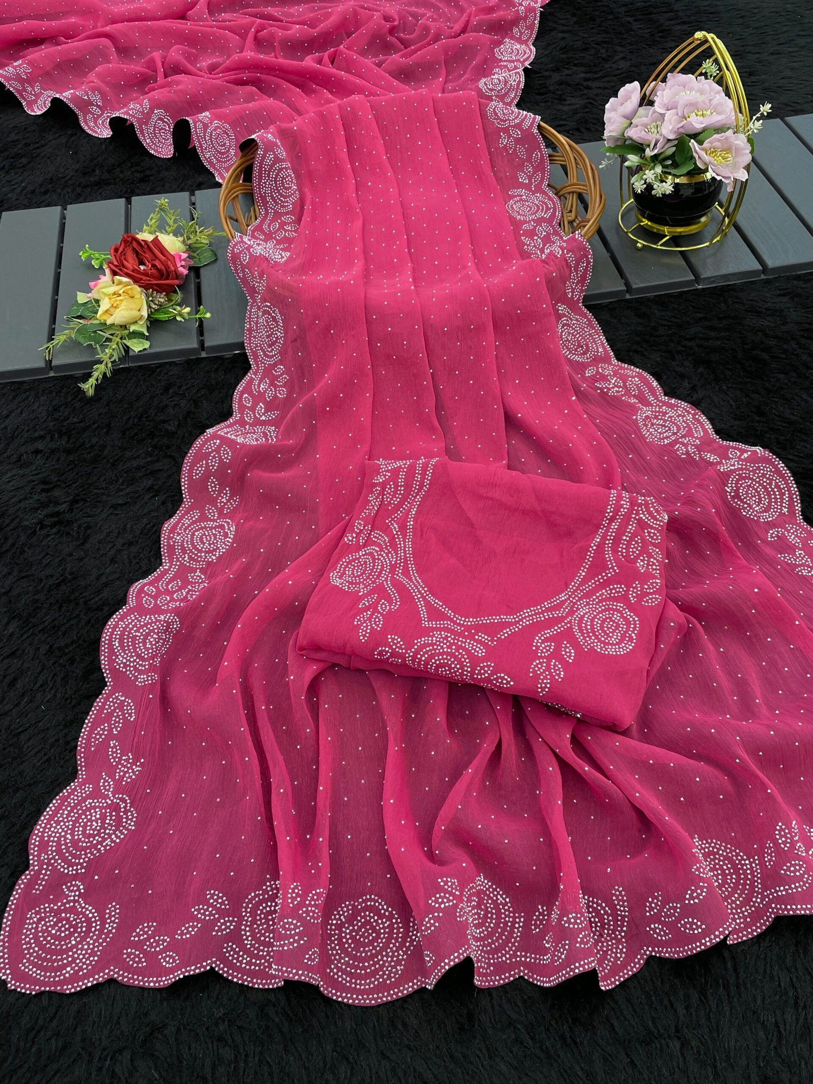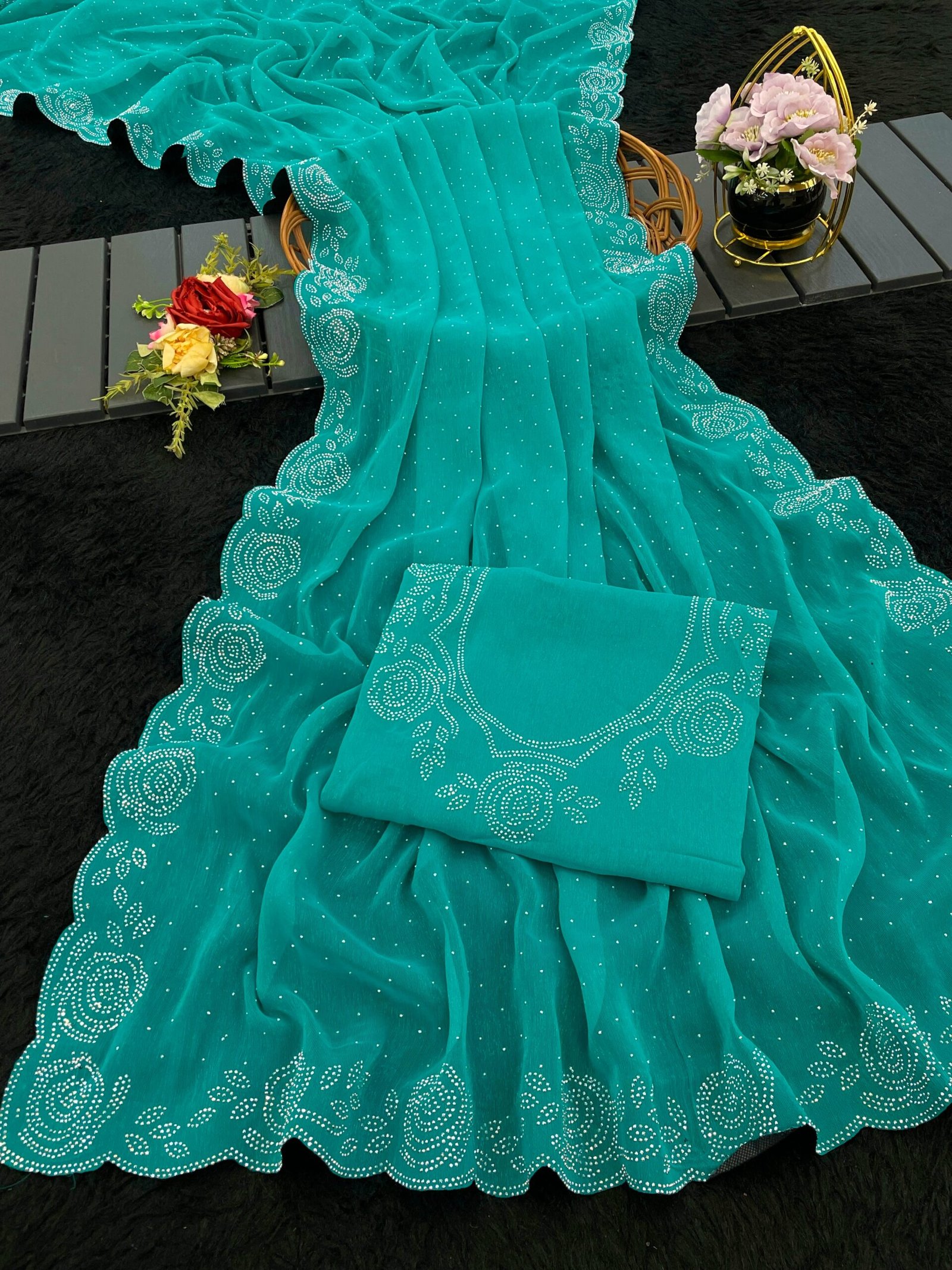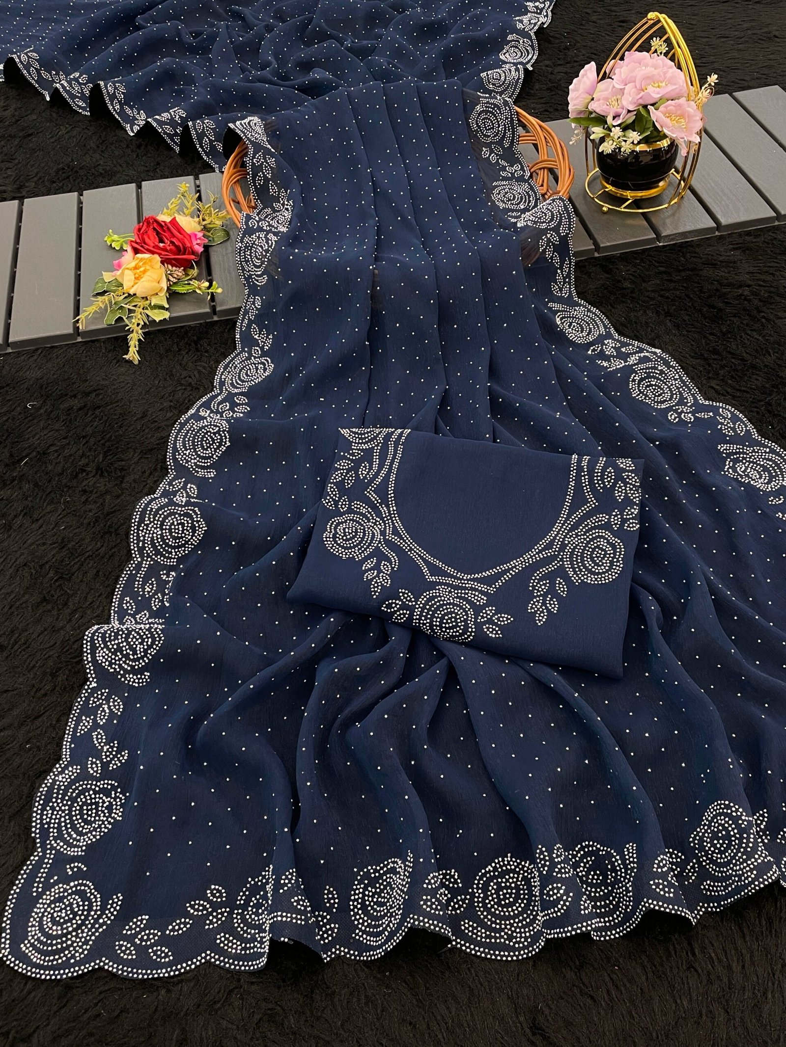 Our Simmer fabric is specially crafted to bring a rich, luxurious touch to every saree. Known for its subtle shine and soft texture, this fabric beautifully balances traditional charm with a modern appeal. Perfect for festive wear, party wear, and special occasions, Simmer fabric drapes gracefully and enhances every design with its elegant finish.